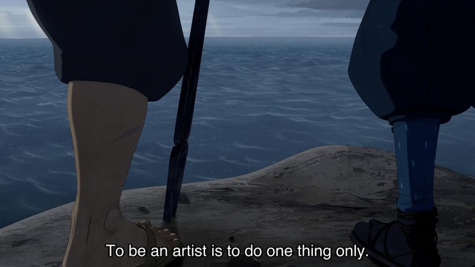 妈呀这是怎么想到用在自己身上抄经书这样的方式来表达自我的重塑的,好厉害(虽然我不是很明白但我大受震撼)把断剑、铁器、小刀全部用来锻剑,就意味自己全盘接受自己身上发生的一切,一心只为追求平静、追求一把更强的剑。