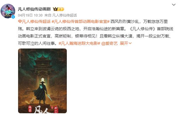 当粉丝们还沉浸在动画和剧集的双重快乐中时,万维猫⼜抛出了⼀个重磅消息——动画大电影《凡⼈修仙传之瀚海迷踪》正式官宣。