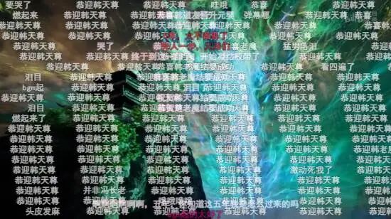 △ 动画中满屏飘过“恭迎韩天尊”弹幕,十分壮观