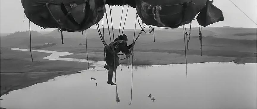 影片开头就描述了一个铁匠乘坐自制的热气球飞向高空,但最终坠地而亡的情景。我们能观察到叶杰姆飞上天空后非常得意,审视着教堂上的圣母画像,并向地面上的人们高喊来炫耀自己的成就,但最后不慎坠落在一匹骏马身边。叶杰姆离开陆地飞向高空是其追求自由的象征,热气球代表着科技的力量,审视圣母画像意味着他对信仰、对上帝的挑战,最终的坠落则宣告了挑战的失败,同时,骏马的出现与其形成对比,突出了人的脆弱、自然的强大。这一段情节通过几处精准的隐喻,描述了脆弱的人试图凭借科技的力量追求自由,但最终倒在信仰面前的反抗过程。追求自由是人的本能,在基督教体系下,人生来便必须遵从信仰,而在自然的外力影响下,追求自由就意味着要挑战信仰,这就是影片想讲的思想困境——即“命定的背叛”。由此也引出塔氏哲学的基本命题:传统基督教约定的信仰能与人本能追求的自由并存吗?如果不能,人在自由的前提下应该接受什么样的信仰?如果能,人如何在信仰之下追求自由?而开篇这个故事,显然给出的答案是不能。那么人应该接受什么样的信仰?影片围绕这个命题展开了叙述。