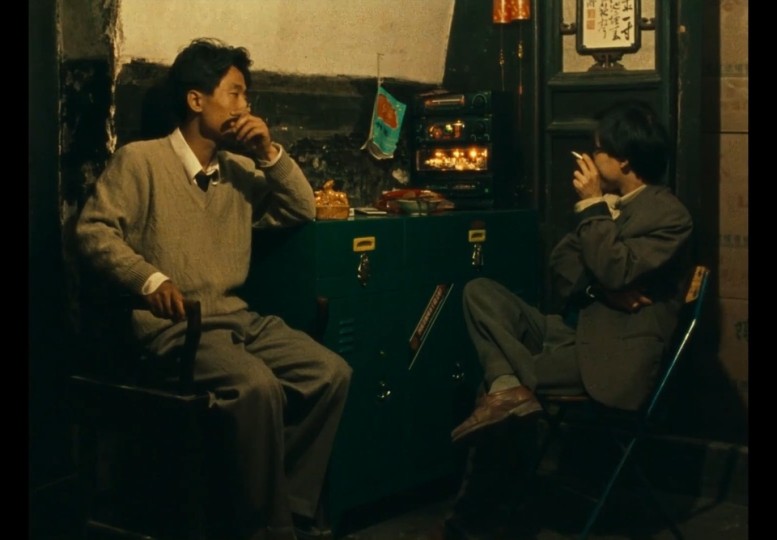 去珠宝店买的戒指本该开心地送给喜欢的人,结果她走了,不告而别地走了。他好像又开始过无所事事游荡的生活。不知道是导演故意安排还是附近影院的隔音效果不好,《喋血双雄》里周润发和叶倩文的台词对白听的一清二楚,小武就无望地站着。那个时代好像香港文化很流行,看港片听粤语歌弄港风发型妆容。