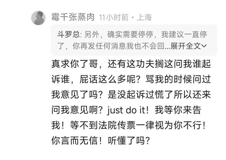 这个影片已经不能用闹心来形容了,影片本身内容差到极致,这一点我在之前的影评里已经详细说明了,这个片子的部分粉丝也是极度不可理喻,评论一句质疑就被用恶言辱骂,辱骂完了之后我被迫反击,他反而成受害者了,真是高,高啊!被骂的人成了加害者,骂人者成了受害者,这本来这影片就是0.5分的影片,现在好感完全败光,0.5分可以四舍五入成0分了!一个自称历史专业的人写的影评里一众标准中权重最低的居然就是历史,情怀占了绝大多数,任何正常人都会质疑,质疑的结果就是从第一句开始就是用脏话谩骂,是可忍孰不可忍?还自称是捍卫自己自由评分的权利,还能拔高到如此程度,你的评论区容不得不同声音就是容不得呗,只发了一句评论就能用脏话辱骂,居然还能弄上看似高尚的理由了。最让人无法理解的就是,我明明一开始只发了一句对他明明褒的部分很少,贬的很多,就质疑这么一句他就骂人,那我当然不干了,最后就话赶话发了40多条评论,但问题是,你一开始能说你是捍卫你自由评分的权利吗?如果不是你不断辱骂,会变成40多条评论吗?会构成现在所谓的对你评分的干涉的表象吗?说到底就是你在干涉我自由评论的权利,并进行网络暴力导致的。另外建议,口才这么好可以用到正道上。 你除了拿法律恐吓还会啥?但问题是这恰恰暴露你对法律一无所知。 来看看我之前转发的文案: