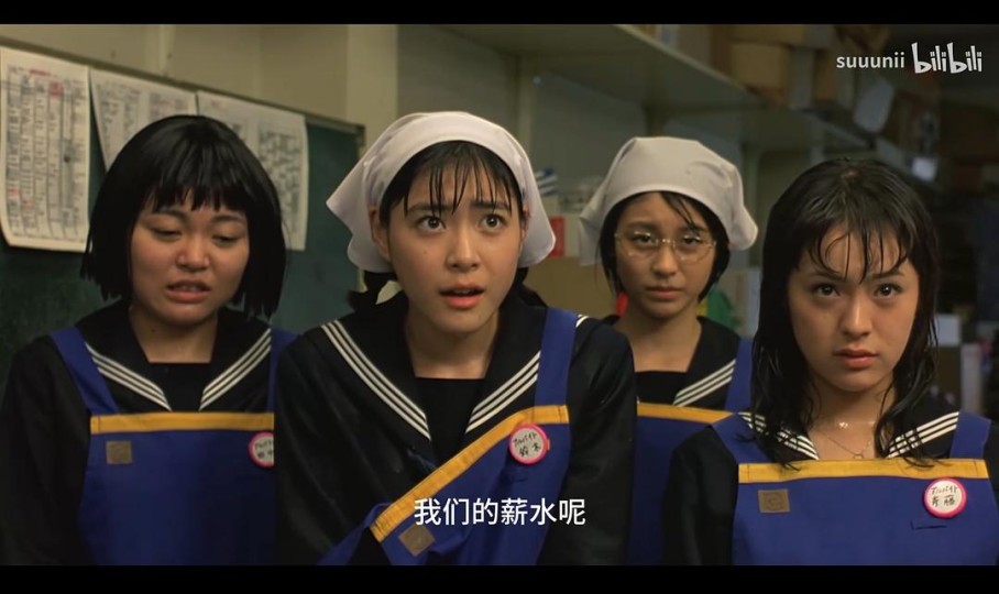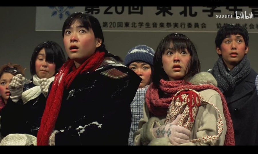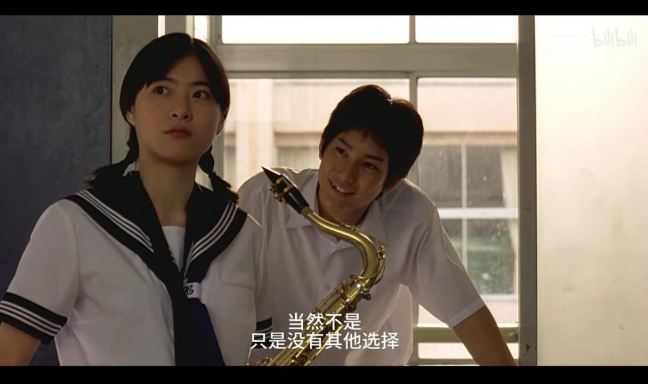 画面太美:小河的对岸你和我,窗前微风拂衣角、冬日雪地奔跑打闹、敲锣打鼓喜气洋洋的车厢、姗姗来迟时冻得红扑扑的脸蛋…… 情感太纯粹:为了逃课而胡闹而排练、只是“夏令营的关系”而纠结是否上前搭话、想买乐器就咋咋呼呼打工、在电梯里集体热吻男模、忘记邮寄录像带而拖累团队想坦白却迟迟无法开口……很经典的治愈系日漫,很美好的群像写生,叫得上名字的人物基本都有自己的动机和细节,寥寥几笔也能勾勒出其完整的故事线——从夏天摇摆到冬天。 电影中的少女形象更是极其鲜活,不同于常见叙事中片面突出其单纯懵懂、柔软善良,而是更立体和生动。少女还是狡黠的、好色的、任性的、顽皮的,也是勇敢的、坚韧的。